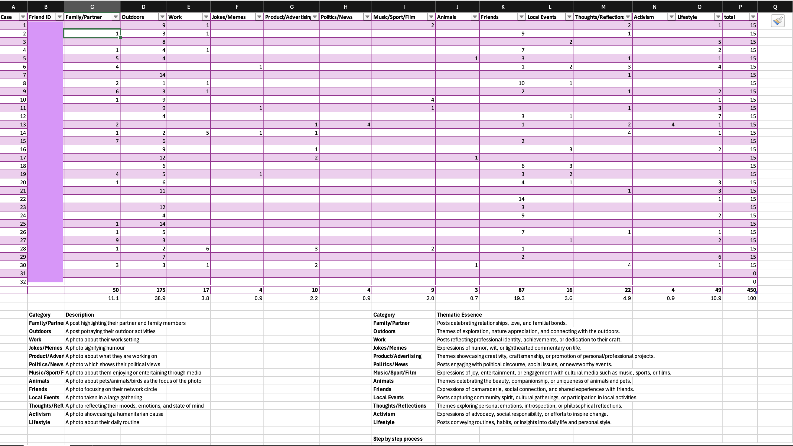 The thumbnail of this post the Excel screenshot summarizes the categorization of Instagram posts analyzed in this study.